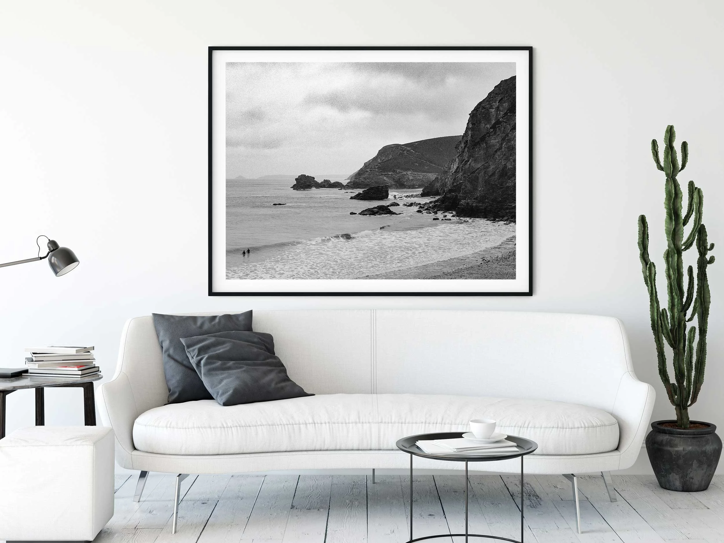 Frames are available in black, white and natural wood. They are handmade in Cornwall with a sealed, dry mount back and a UV glass front making them moisture-resistant and gallery quality. All frames come with hanging hardware making the process of hanging simple. Large framed prints are shipped within the UK only by a dedicated art courier.